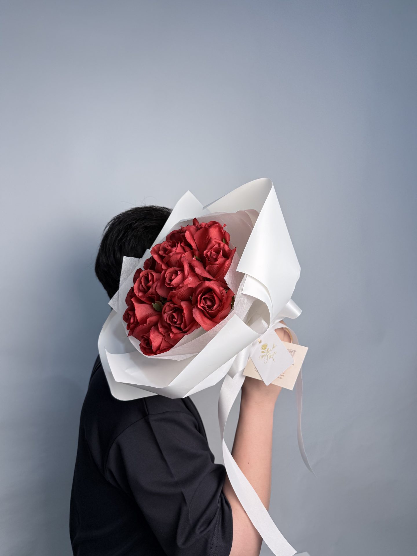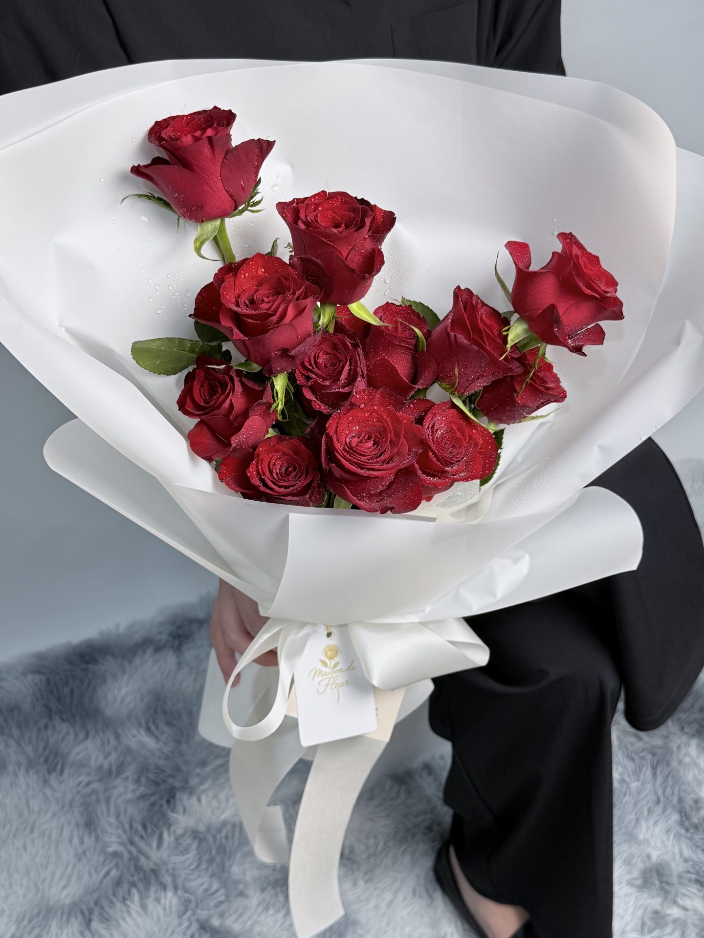 ช่อกุหลาบแดงสดคัดเกรดพิเศษ จัดอย่างหรูหราสง่างามในสไตล์มินิมอล ห่อด้วยกระดาษสีขาวและผูกโบว์ซาตินสีขาวตัดกับดอกไม้สีแดงเข้มอย่างโดดเด่น เหมาะสำหรับมอบให้ในโอกาสพิเศษที่สุด ไม่ว่าจะเป็นวันครบรอบ วันวาเลนไทน์ หรือเพื่อแสดงความรักที่แรงกล้าและมั่นคงเหนือกาลเวลา