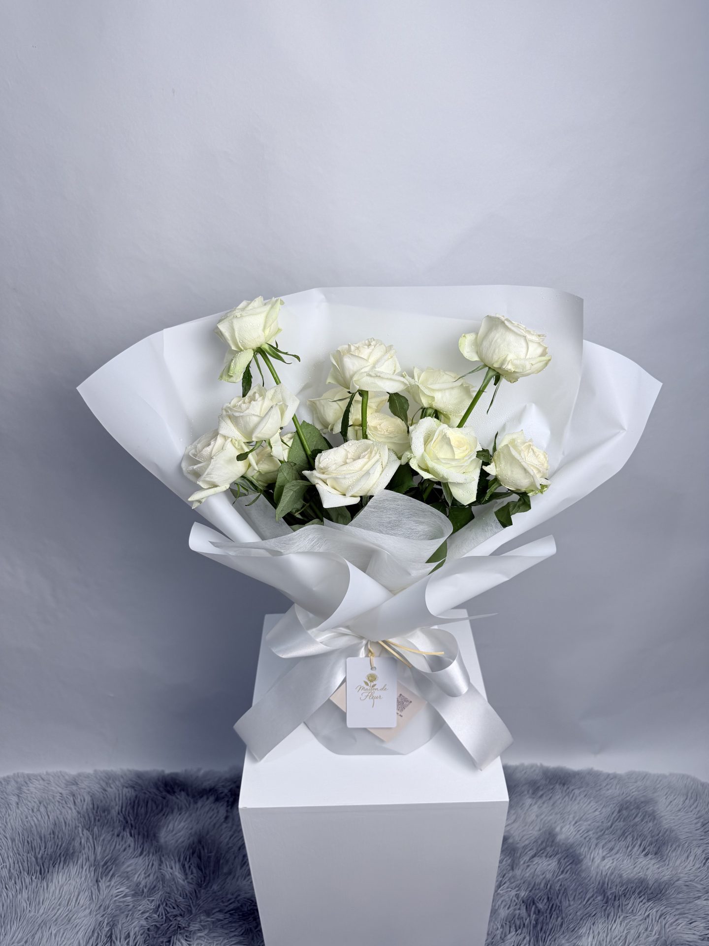 ช่อกุหลาบขาวสดคัดพิเศษ จัดอย่างเรียบหรูในสไตล์มินิมอล ห่อด้วยกระดาษสีขาวและผูกริบบิ้นโทนเดียวกัน ให้ความรู้สึกสะอาด บริสุทธิ์ และสง่างาม เหมาะสำหรับวันแต่งงาน วันครบรอบ หรือการมอบให้ผู้ใหญ่ที่เคารพรัก