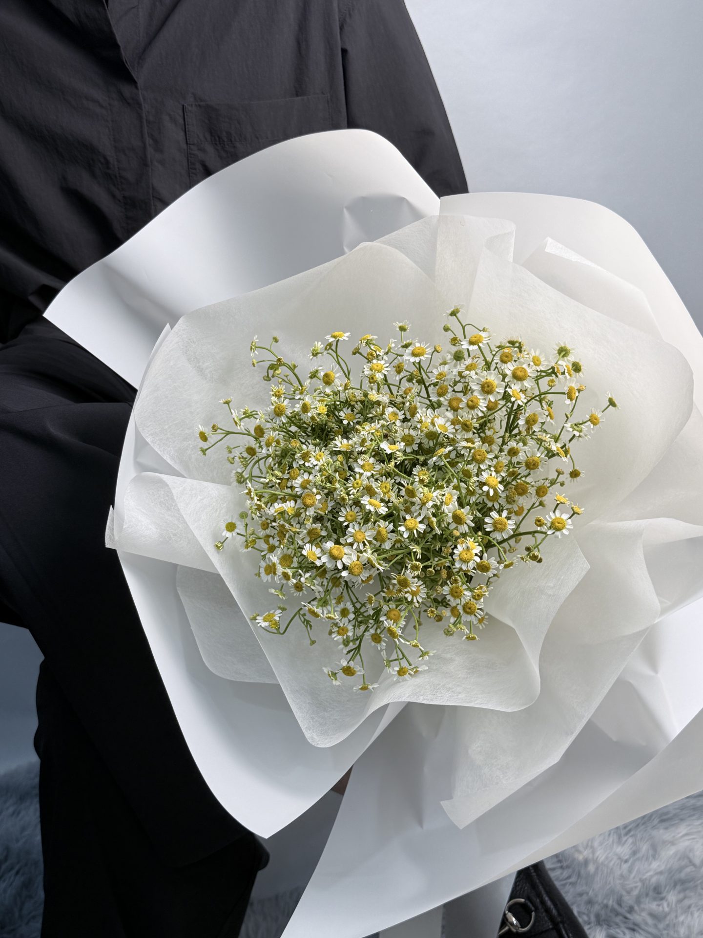 ช่อดอกเดซี่ขาว-เหลืองสดคัดพิเศษ จัดอย่างเรียบง่ายในสไตล์มินิมอล โดดเด่นด้วยความสดใสและความน่ารักเป็นธรรมชาติ ห่อด้วยกระดาษสีขาวสะอาดและผูกริบบิ้นโทนเดียวกัน เหมาะสำหรับการมอบให้เพื่อส่งรอยยิ้ม ความสุข และกำลังใจในทุกโอกาส ทั้งวันเกิด วันรับปริญญา หรือเป็นของขวัญแทนใจในวันธรรมดาให้พิเศษขึ้น