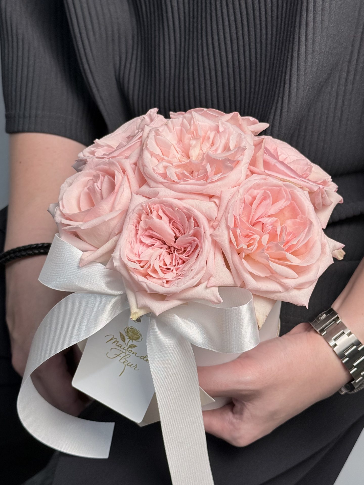 ความงดงามเหนือกาลเวลา ถ่ายทอดผ่านกลีบกุหลาบชมพูอ่อนที่เรียงตัวอย่างอ่อนโยน ผสมผสานกับดอกไม้โทนครีมและใบเขียวเล็กน้อย สื่อถึงความอ่อนหวาน ความสงบ และความสง่างามในทุกมุมมอง